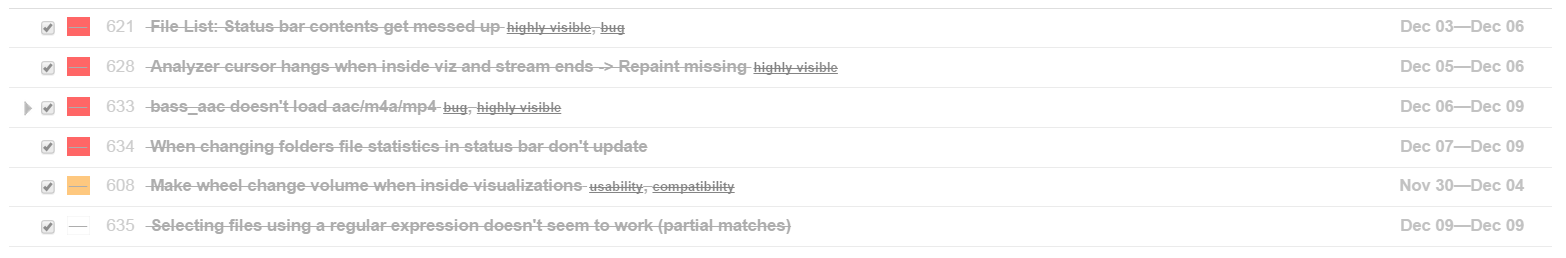Especially handling-wise, problems with browser, problems with playback orders, file list issues, control behavior issues, etc.