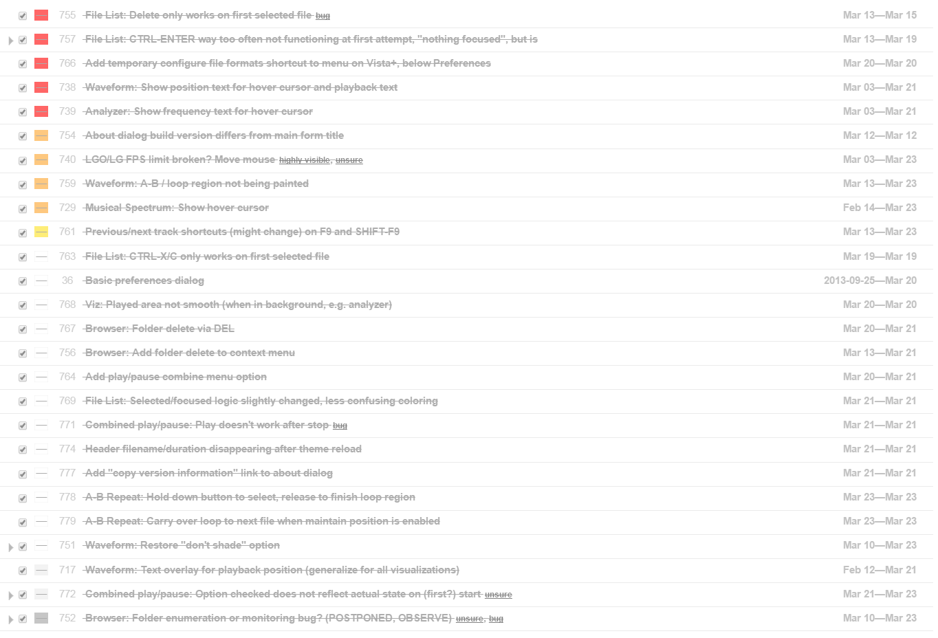 There seems to be no delay between playback automatically progressing through the list now, which kinda makes a large part of what I've been doing (auditioning quite a few short sounds & organising them) quite useless, moves far too fast to be of any use in that context - which was going to be what I was reccomending this to people as a massive strength as it has been so great with that previously. I shall go back to using the prev beta version for any work on my sample library I'm doing to be frank. I guess seemless playing is what an music player does though & I'm expecting a bit much