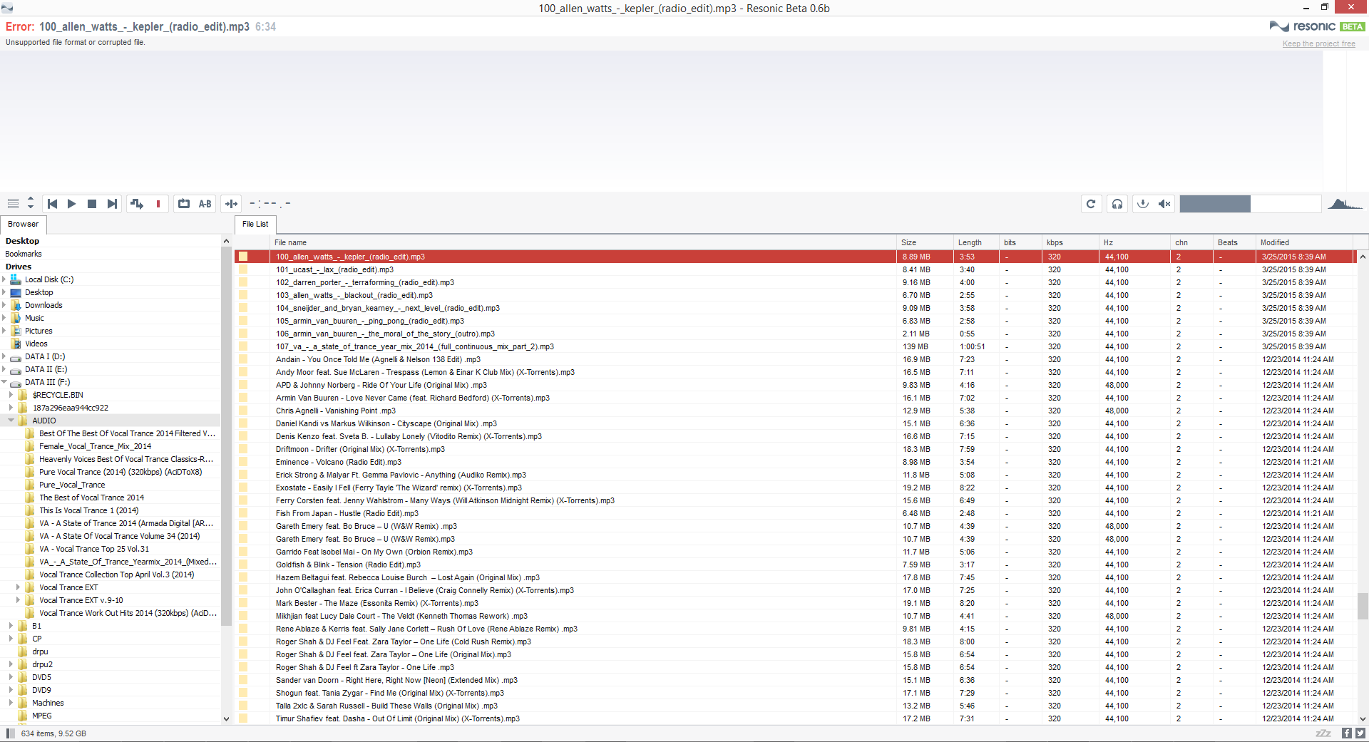 So, i let resonic run over the night. Then, this morning, non of the files could be opened/played from the already populated File list, 'unsupported format or corrupted file' error was returned for any file. Restarting resonic fixed the issue. This PC never enters in a standby or hibernation state.