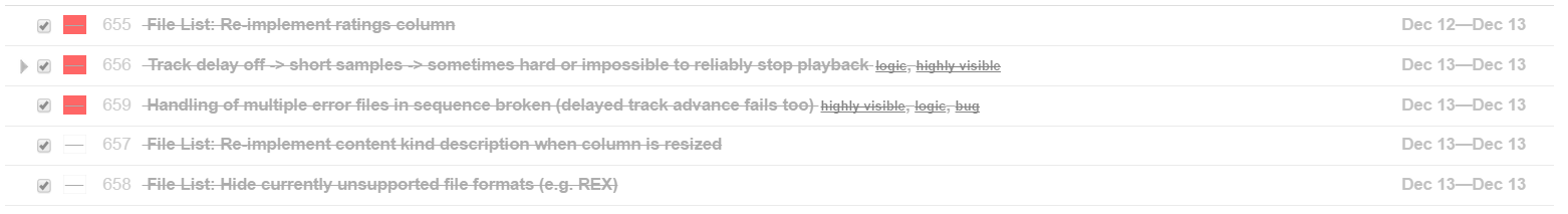 Delayed track advance, improved playlist handling, error handling (2 sec delay on error files), date columns, shade played area option, track delay + minimum track length feature tests.