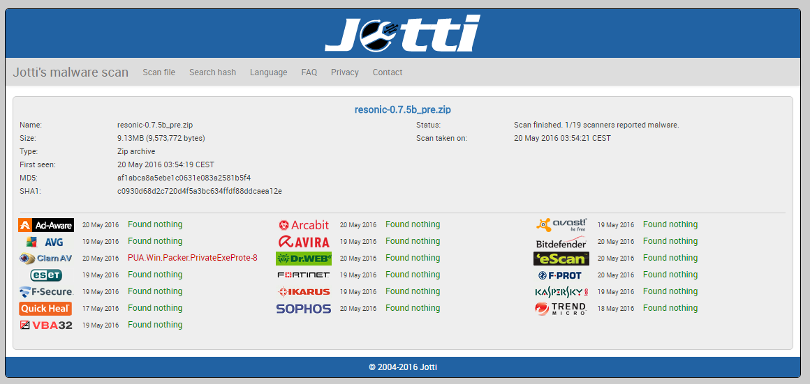 Trojan file: resonic-0.7.5b_pre.zip