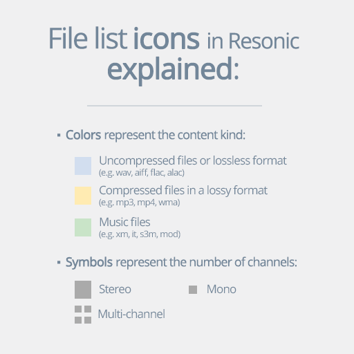 Here's what all the various icons in Resonic's file list mean. Some new ones were introduced in the latest Alpha 910.