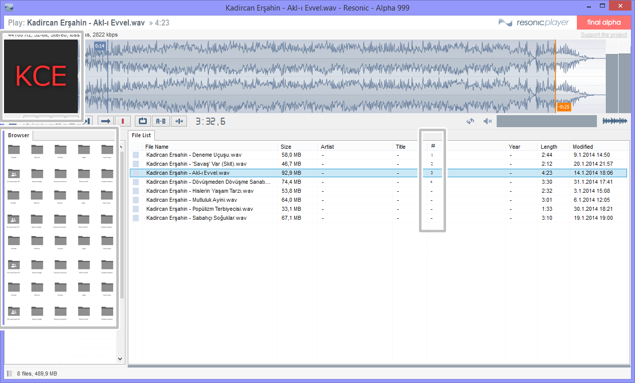 I find the kadircanersahin's original idea great. I personnaly nerver hide the wavefom so maybe you can, if it's not too hard and to long to develop, make an option with the album art emplacement selection. On the left of the waveform and on below the browser.Tom wrote:Album art is in the works, will probably try below browser, because when a user hides the waveform the cover is hidden as well.