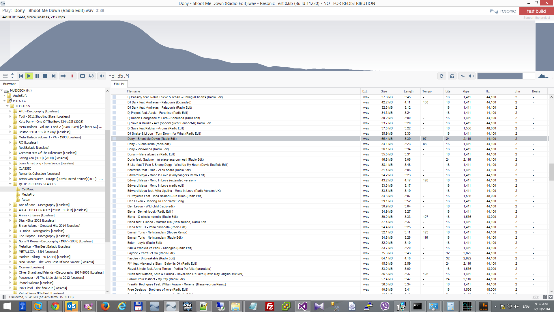 So the only player which successfully loaded all tracks was RESONIC! Not only imported, but it did it in just a few secs, no processor spikes or huge memory consumption and instant playback while and after loading them! Well done Tom!
