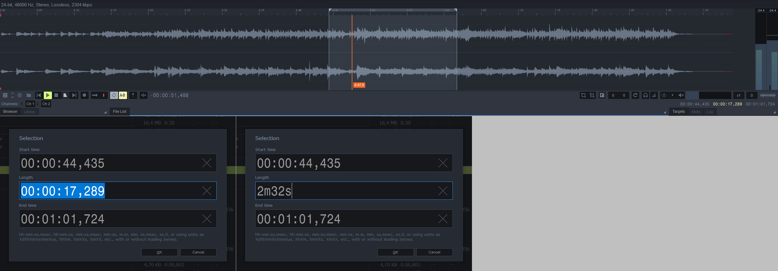 I tried to provide good shortcuts and make input human-friendly (from where to what, minutes, seconds, etc.) rather than for machines (explicit timecode format required).